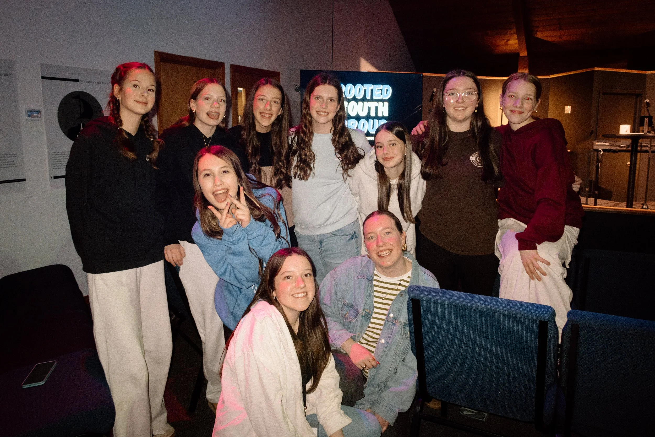 On Wednesdays from 7-8:30pm, all of our students (Grades 6-12) meet for Rooted, our weekly youth night to seek God through worship, teaching, community, and wild amounts of fun.
